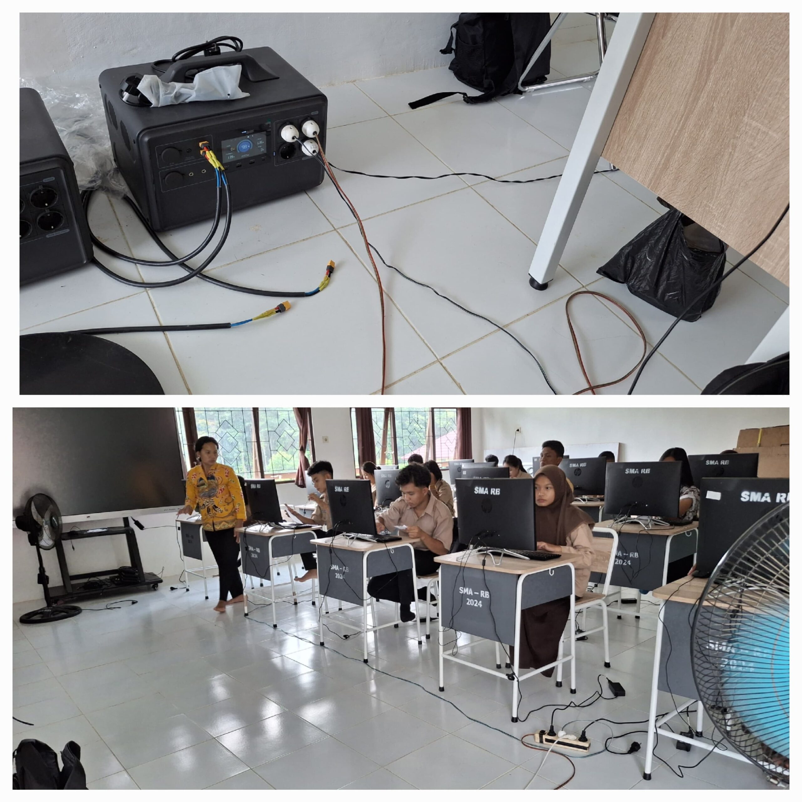 Tenaga surya memungkinkan komputer dan TV interaktif tetap menyala meski listrik padam. Sementara itu, jaringan internet dari Starlink menjamin koneksi stabil selama gladi AN berlangsung. Bahkan guru-guru yang sedang mengikuti PPG online tetap bisa mengikuti kelas tanpa gangguan sinyal.
